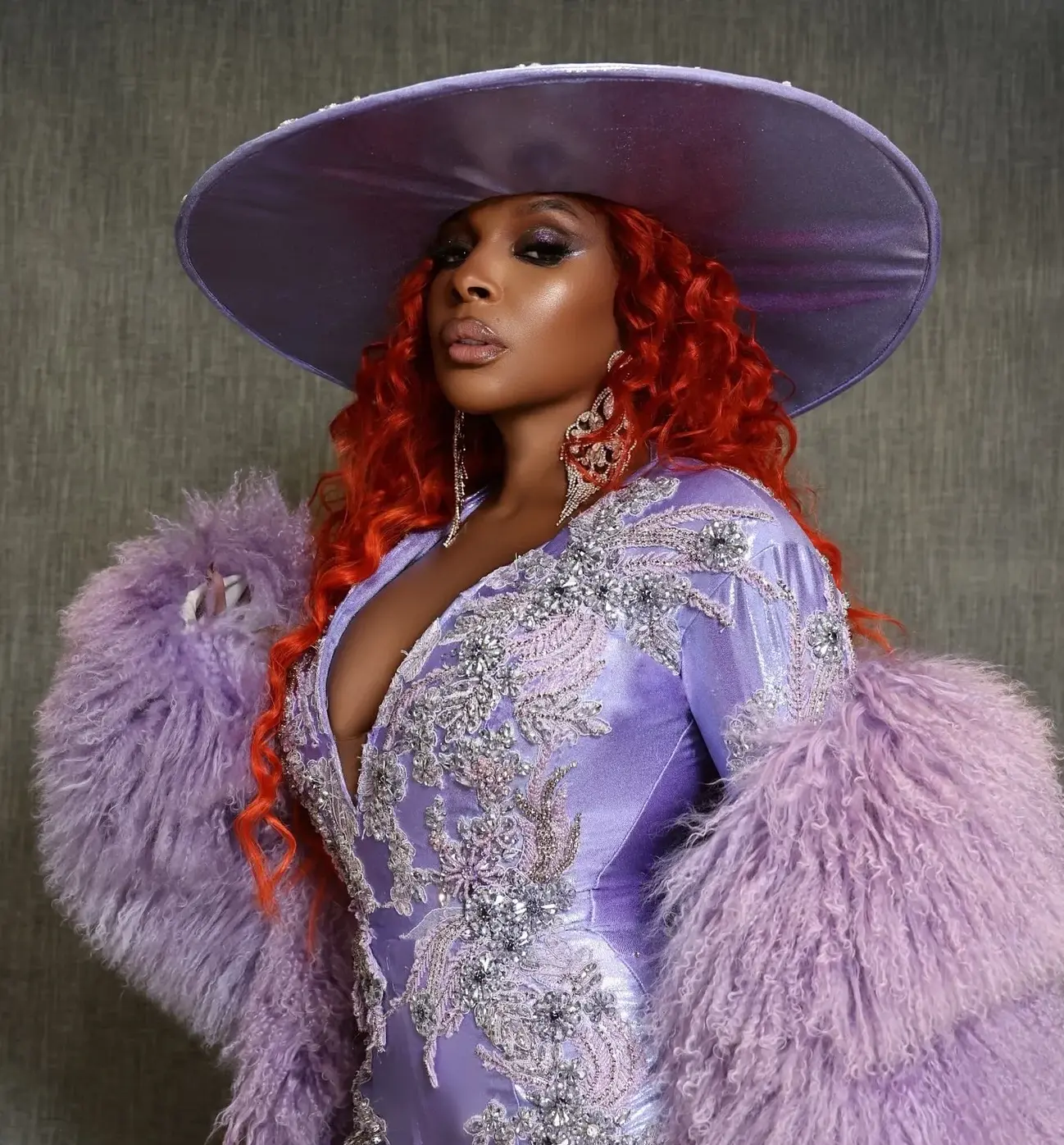 Мэри Джей Блайдж начала свой тур «Для моих фанатов» с яркого выступления и не менее впечатляющего образа. Певица выбрала эксклюзивный фиолетовый костюм от Walter Collection, дополненный дизайнерскими элементами от Angel Brinks. Завершила образ лиловая монгольская шуба от FGM Bespoke, которая добавила образу роскоши и элегантности.